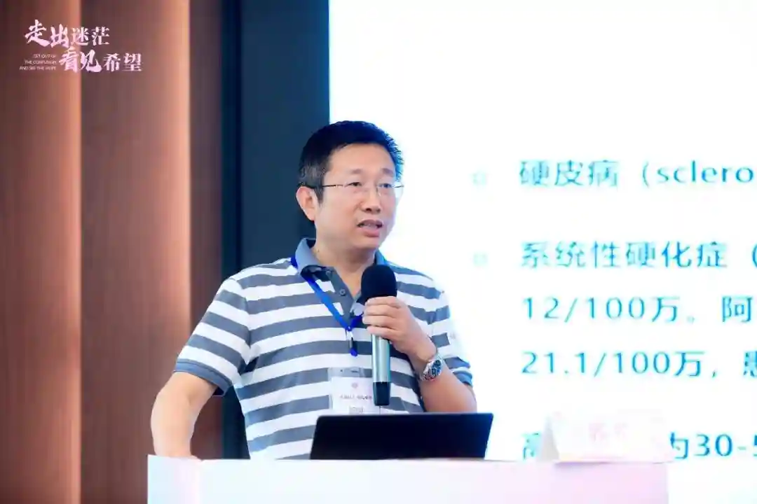 四川大学华西医院风湿免疫科刘毅教授对本次会议进行致辞,表达了他对公益事业与硬皮病患者的关心与支持。随后刘毅教授进行了《干细胞治疗硬皮病的研究进展》的主题讲座以及相关答疑,详细介绍了近几年他与团队在脐带间充质干细胞及其衍生物干预系统性硬化症及间质性肺病的探索性研究上所取得的新进展,为硬皮病的治疗带来了更多的可能,把希望传递给大家。